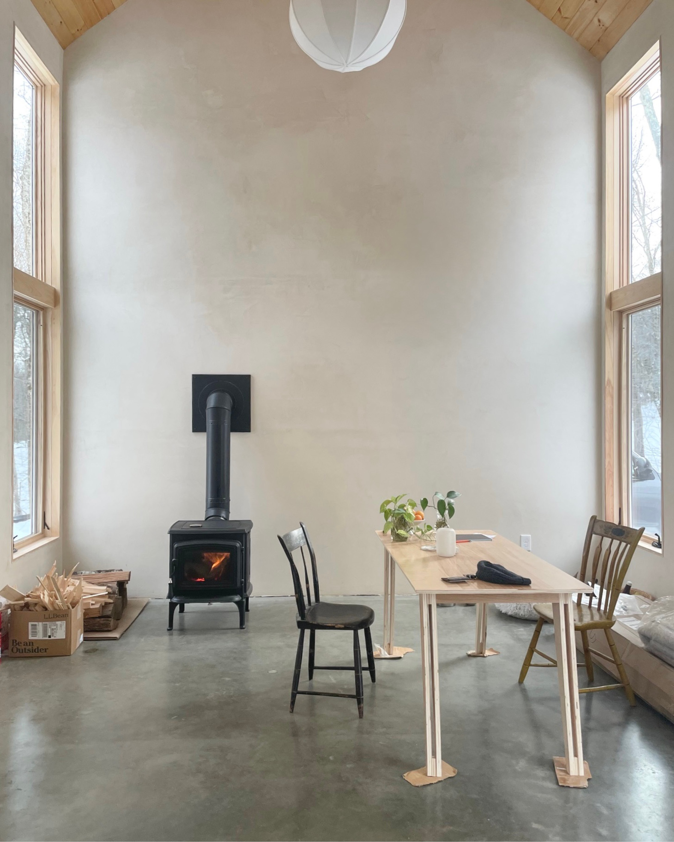 The ceiling height - driven by the upstairs bedrooms - makes the modest living room feel spacious